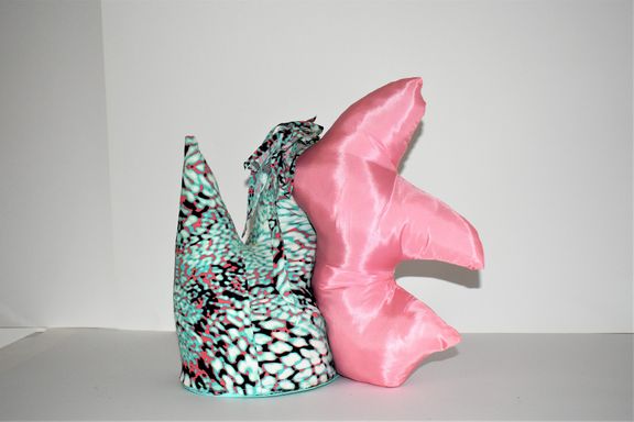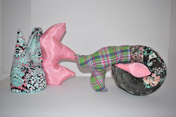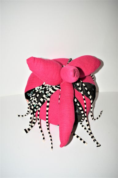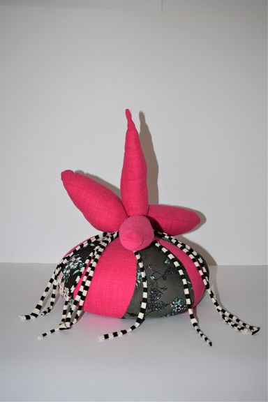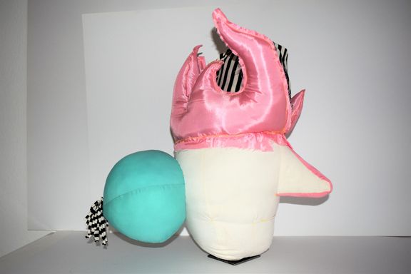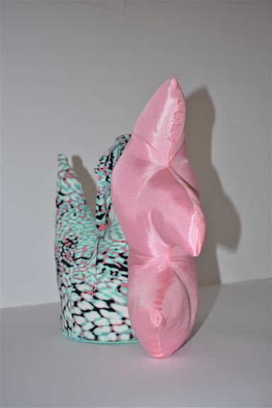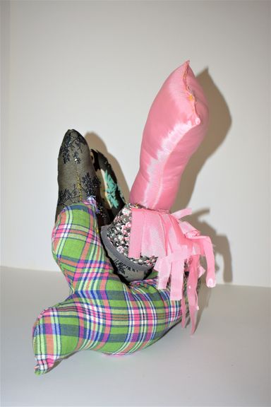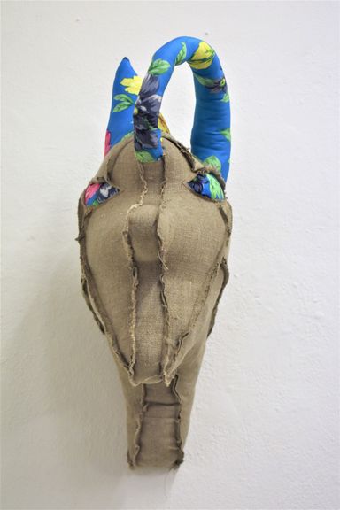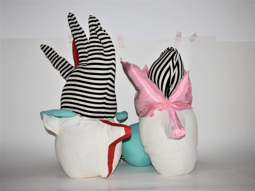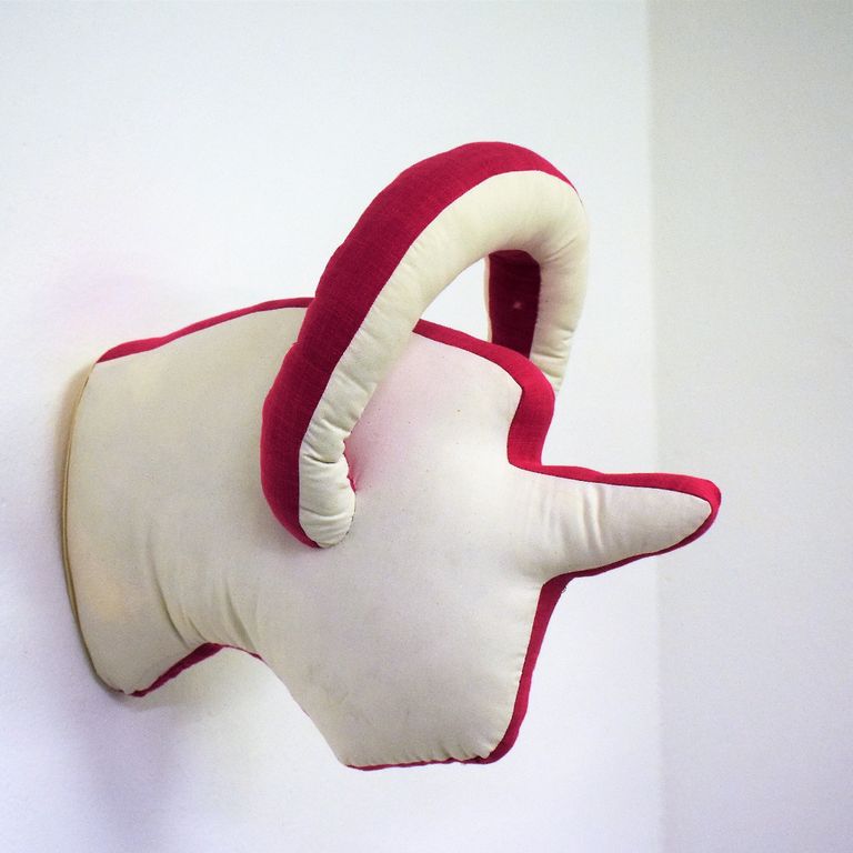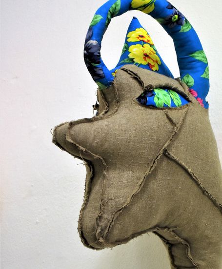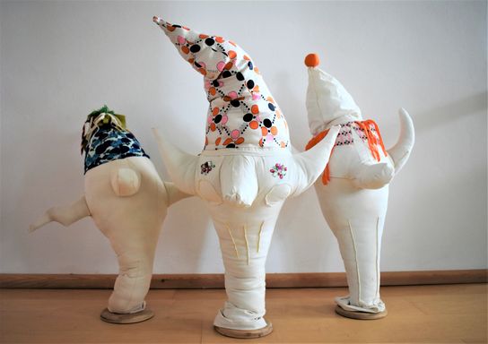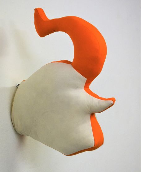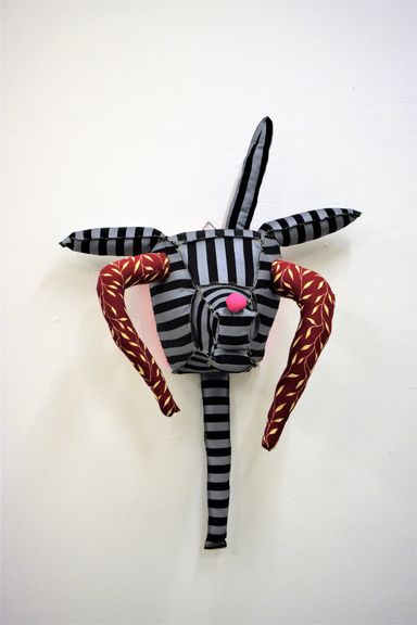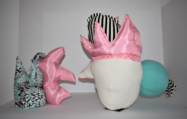 Die Künstlerin mischt verschiedene Stilrichtungen zu neuen Postmodernen Stoffskulpturen. Sie erinnern an stoffliche Spielfiguren, ausgestopfte Jagttrophäen und Kultfiguren. Die dreidimensionalen lebensgroßen Köpfe repräsentieren sich in animalischer, menschlich und tierähnlichem Aussehen. Sie sind einzeln ein komplexes Ganzes, das aus verschiedenen Materialien, Symbolen, Gebärden und erstarrten Bewegungen besteht. In der Siluette verschränken sich Positiv und Negativform zu einer gesteigerten Bildwirkung, ähnlich einem Schattenriss. Die raumplastische Wirkung verstärkt sich durch eine kontrastreiche Farb- und Materialkombination.