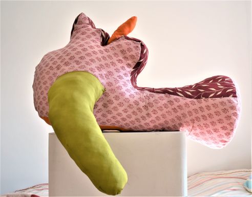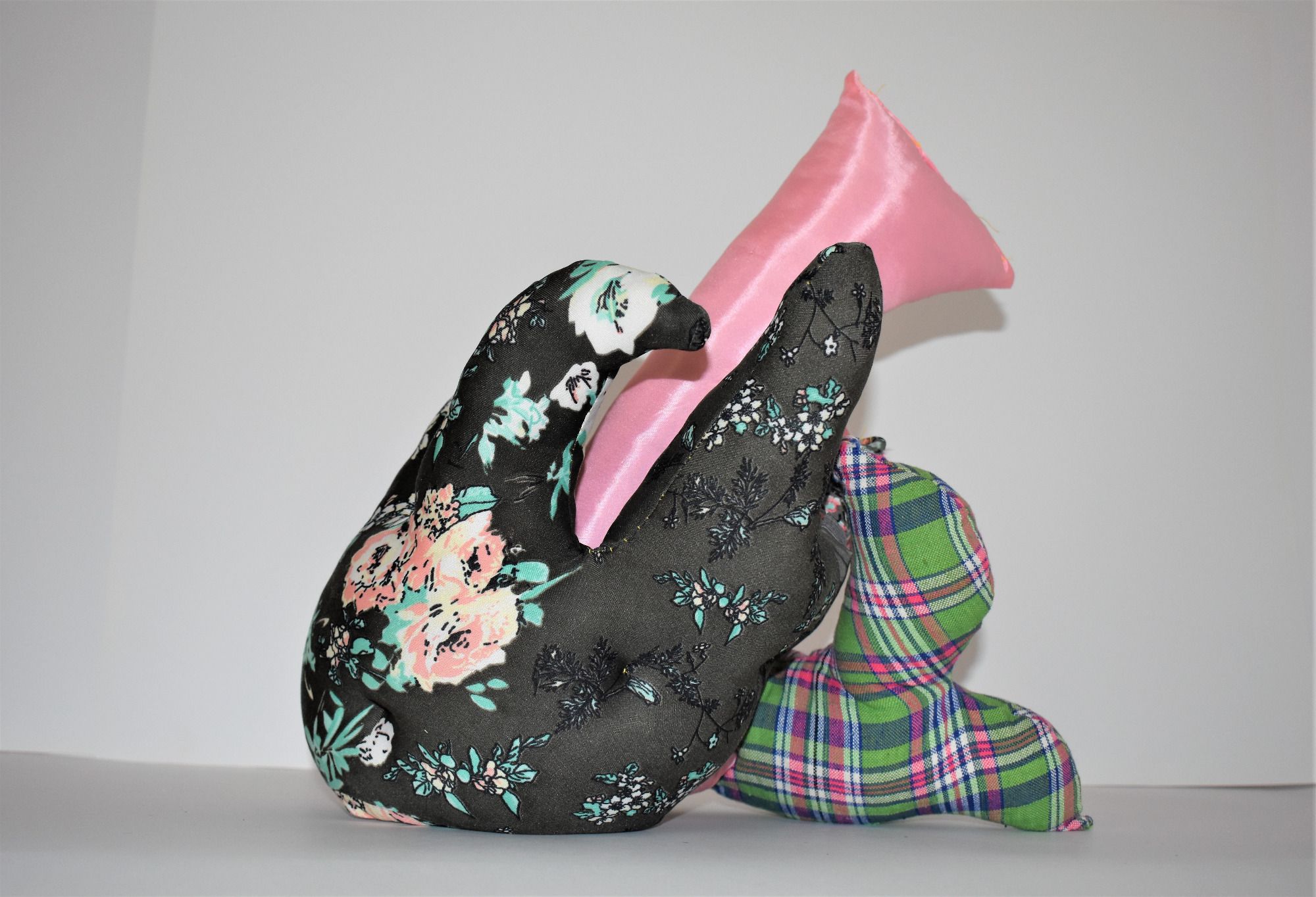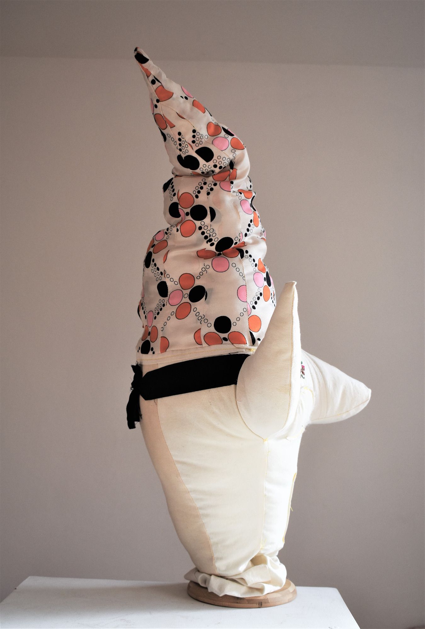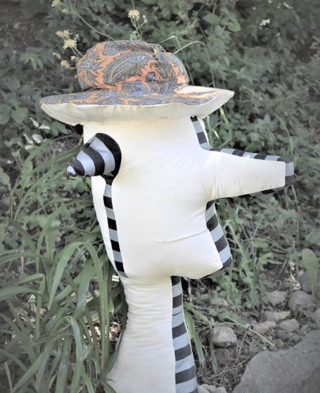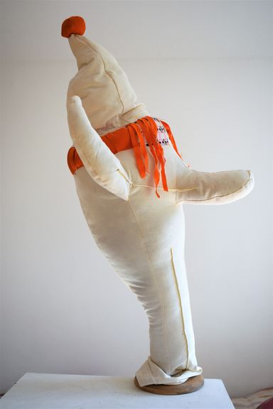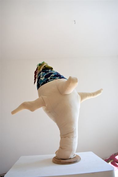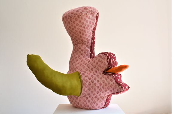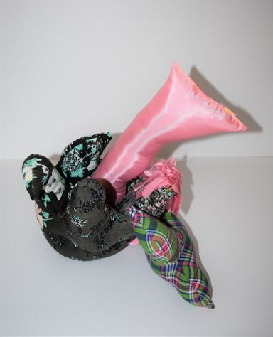 Die Künstlerin mischt verschiedene Stilrichtungen zu neuen Postmodernen Stoffskulpturen. Sie erinnern an stoffliche Spielfiguren, ausgestopfte Jagttrophäen und Kultfiguren. Die dreidimensionalen lebensgroßen Köpfe repräsentieren sich in animalischer, menschlich und tierähnlichem Aussehen. Sie sind einzeln ein komplexes Ganzes, das aus verschiedenen Materialien, Symbolen, Gebärden und erstarrten Bewegungen besteht. In der Siluette verschränken sich Positiv und Negativform zu einer gesteigerten Bildwirkung, ähnlich einem Schattenriss. Die raumplastische Wirkung verstärkt sich durch eine kontrastreiche Farb- und Materialkombination.